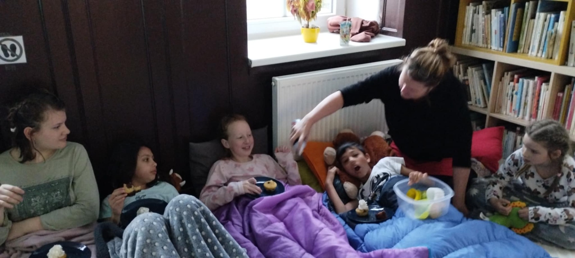28.3.2025 proběhla v knihovně přespávanda s Andersenem. Po společně připravené večeři se četlo, hrály se hry a koukalo se na pohádku. Ráno se akce ukončila snídaní do postele a zábavným tvořením. Děti si to užily a všichni se těšíme na příště.